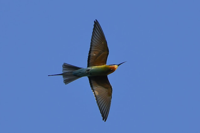 オウチュウ(Black Drongo)も飛びました。 ルリオハチクイ(Blue-tailed Bee-eater)も群れで鳴きながら通過して行きます。
