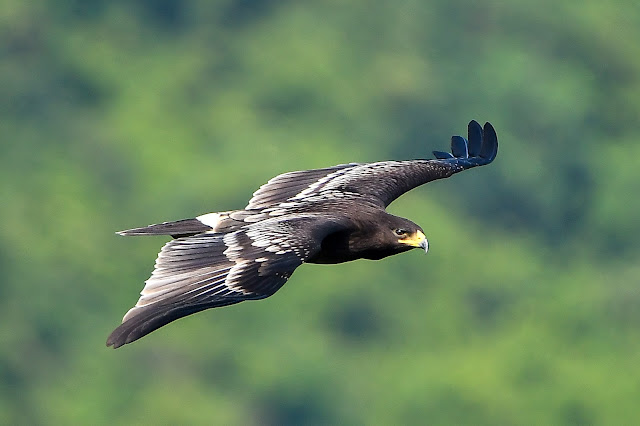 そして、そのクロカッコウハヤブサの大群の前をカラフトワシ(Greater Spotted Eagle)が横切っていきます。素晴らしい光景!
